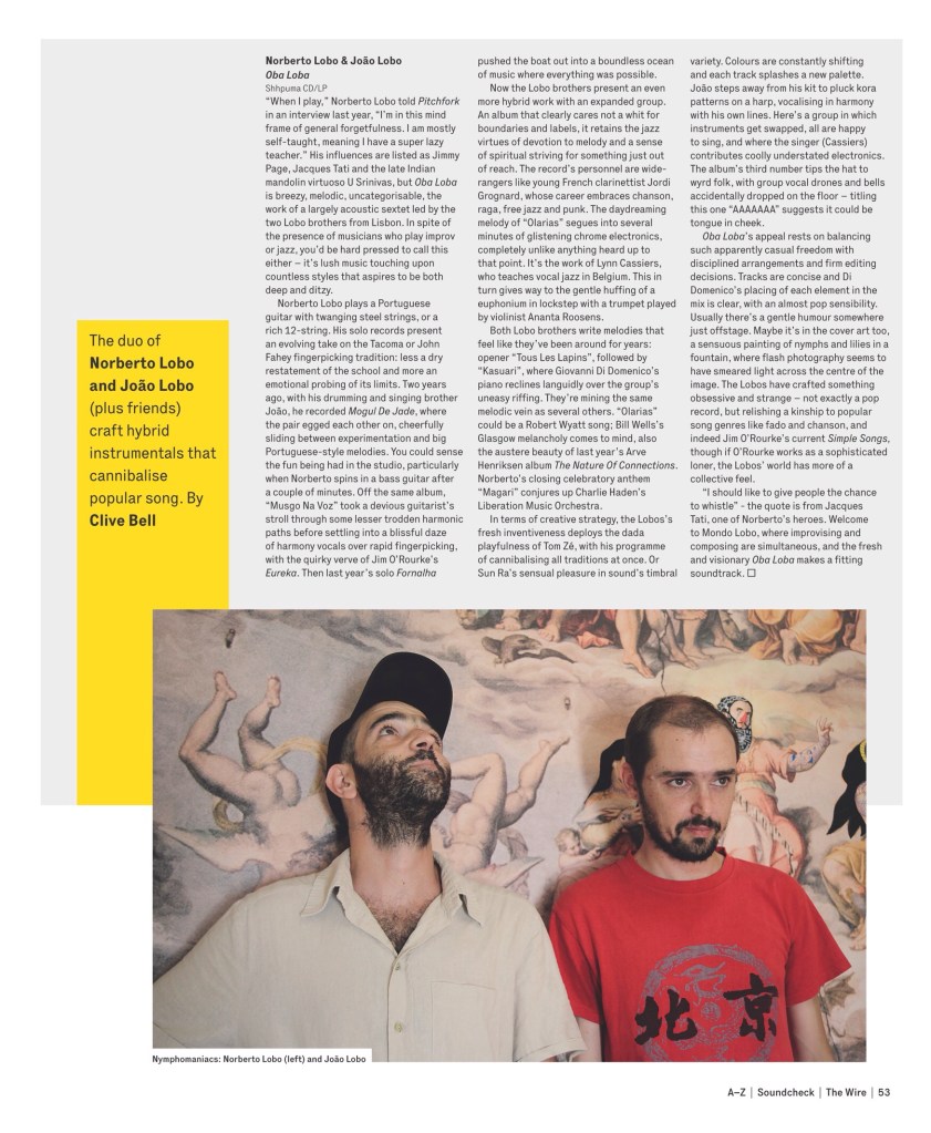 « […] Welcome to Mondo Lobo where improvising and composing are simultaneous, and the fresh and visionary Oba Loba makes a fitting soundtrack. » in The Wire about « Oba Loba »