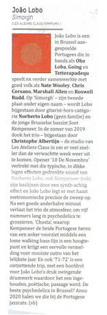 “[…] De beste psychadelica in Brussel? Anno 2020 halen we die bij de Portugese jazzcats.” in Gonzo Magazine about “Simorgh”.