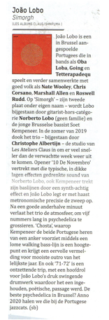 “[…] De beste psychadelica in Brussel? Anno 2020 halen we die bij de Portugese jazzcats.” in Gonzo Magazine about “Simorgh”.